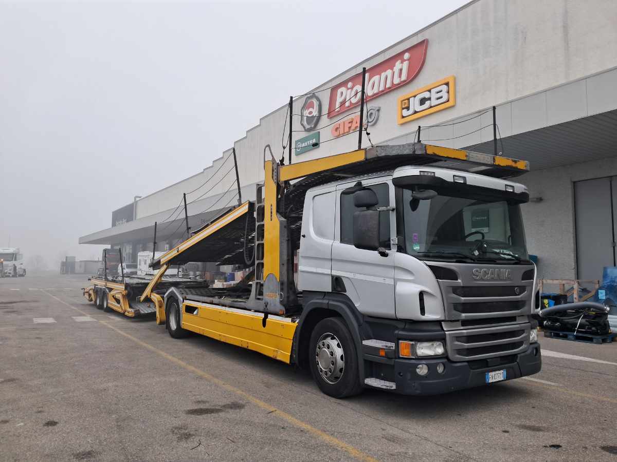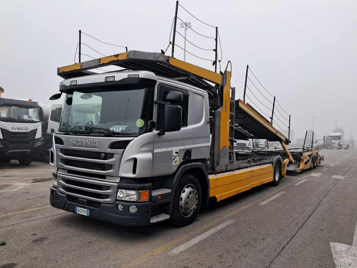Autocarro Scania P 410 4×2 cv 410 euro 6 con rimorchio trasporto veicoli – bisarca